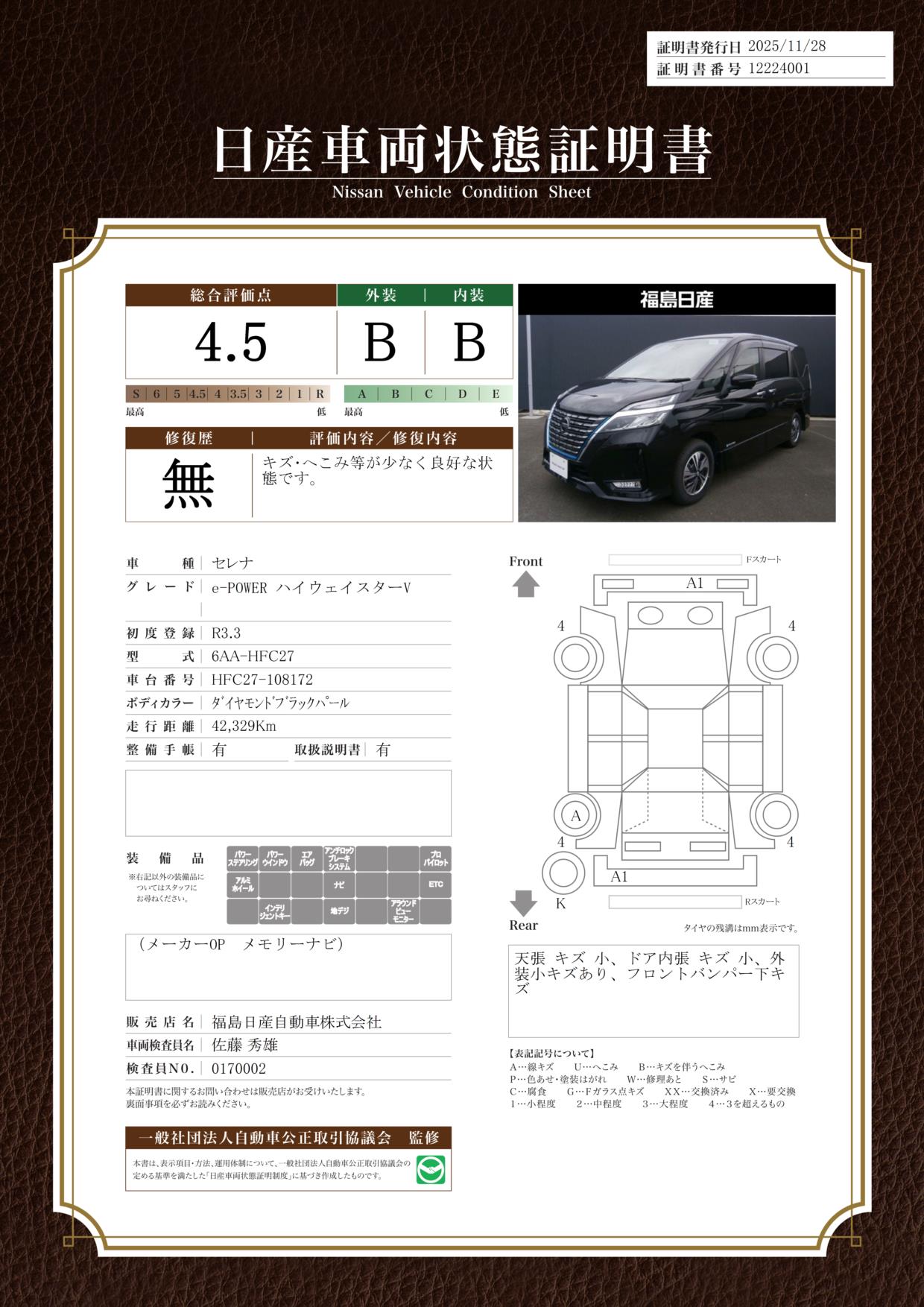 日産自動車認定の中古車販売店です。