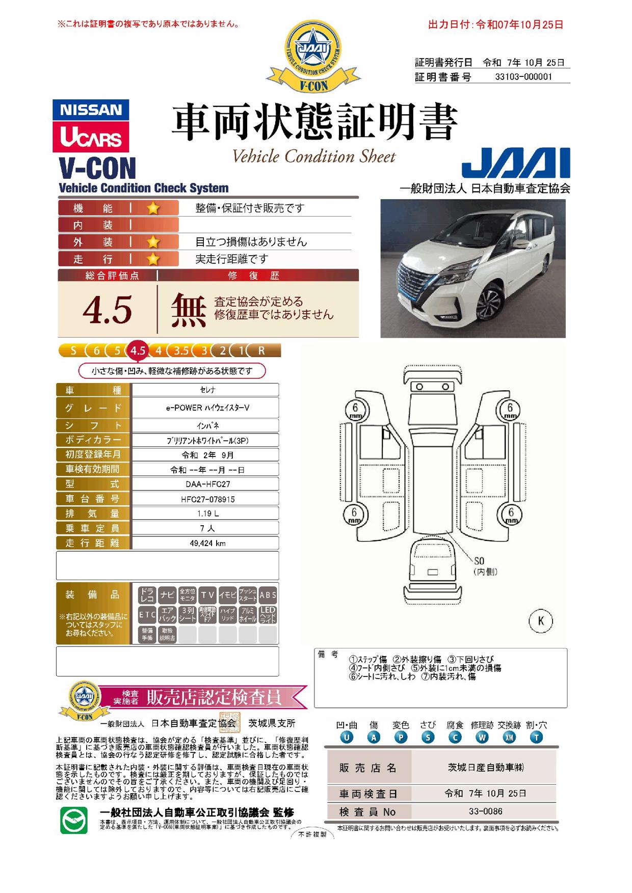 車両状態証明書を見る