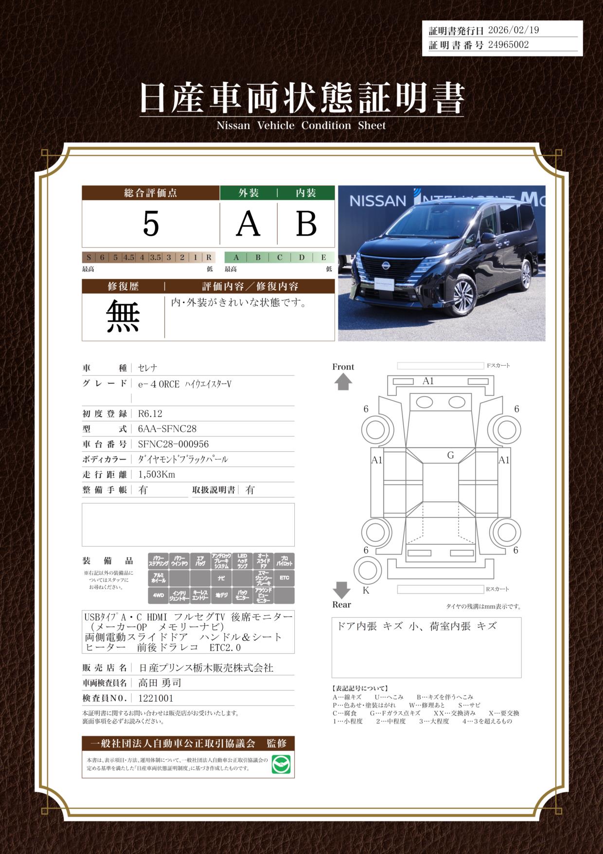 現状括弧書き内の年月まで車検有効期限が残っていますが、ご成約時に新しく車検を取り直します。なお取り直しの費用は車両価格に含まれています。