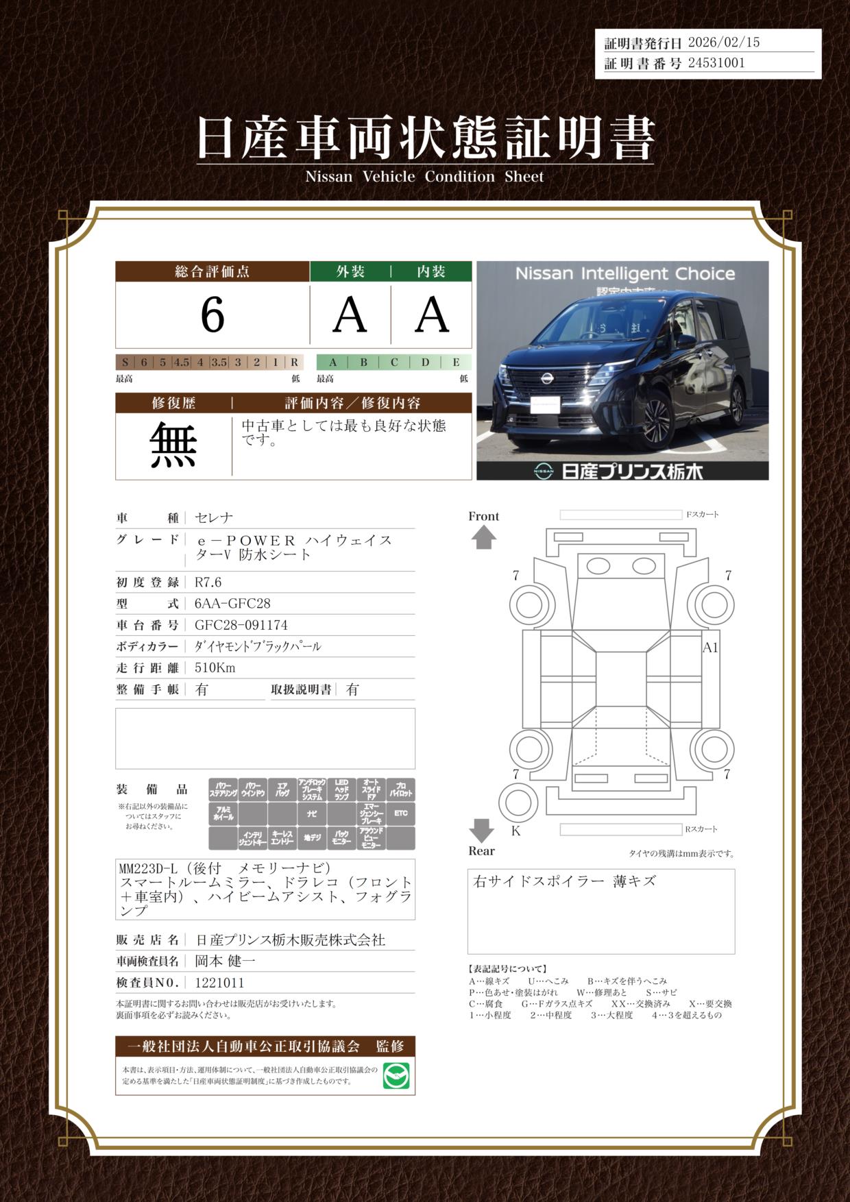 「車両状態証明書」は、査定協会監修のプロの検査員が公正かつ確かな基準で検査した”安心の証”です。