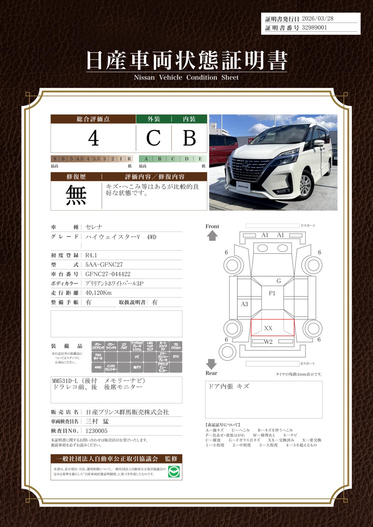 現状車検切れの状態ですが、ご成約時に新しく車検を実施します。車検費用は車両価格に含まれています。