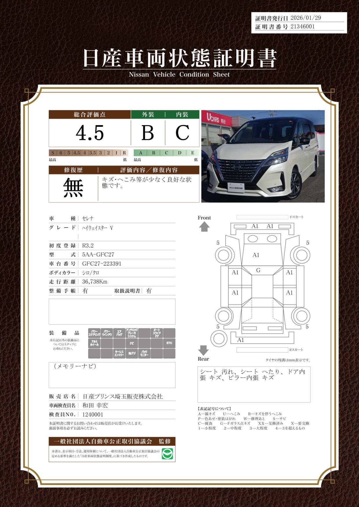現状括弧書き内の年月まで車検有効期限が残っていますが、ご成約時に新しく車検を取り直します。なお取り直しの費用は車両価格に含まれています。