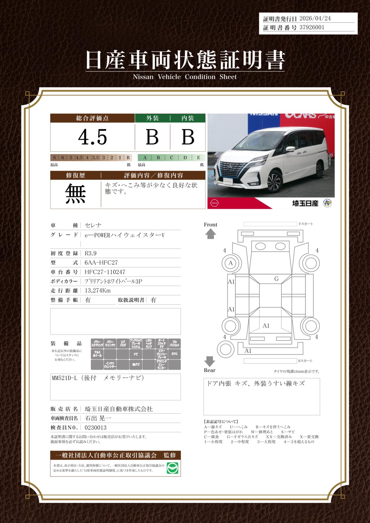「車両状態証明書」は、査定協会監修のプロの検査員が公正かつ確かな基準で検査した”安心の証”です。