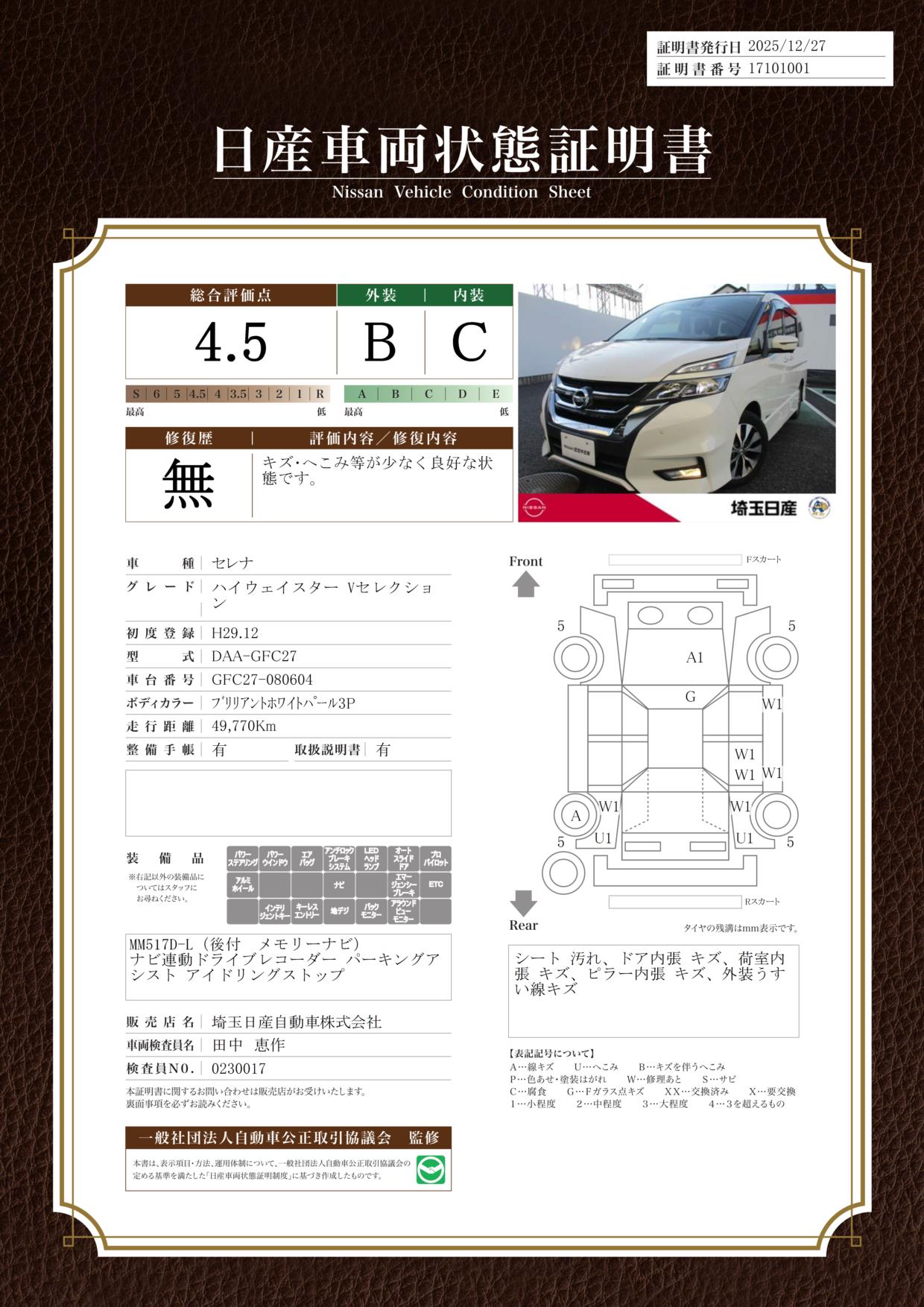 現状括弧書き内の年月まで車検有効期限が残っていますが、ご成約時に新しく車検を取り直します。なお取り直しの費用は車両価格に含まれています。