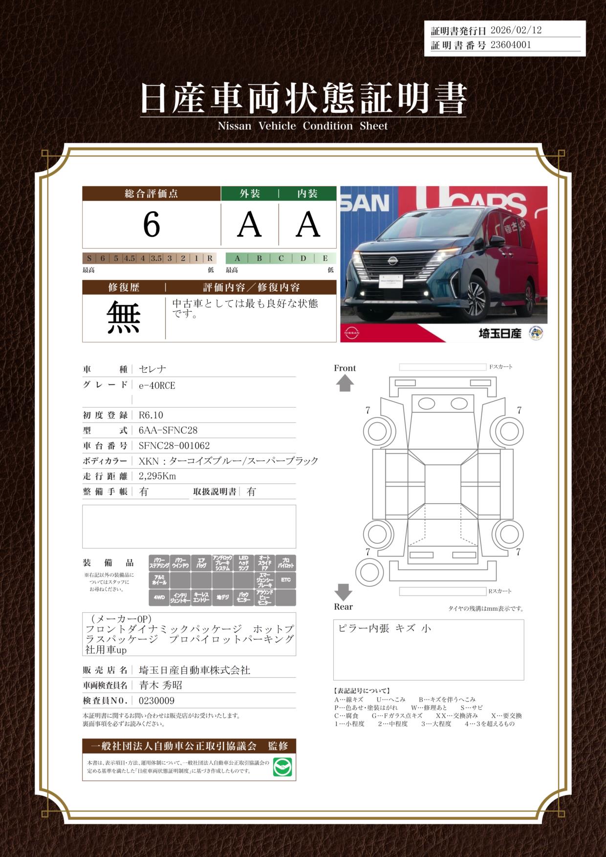 「車両状態証明書」は、査定協会監修のプロの検査員が公正かつ確かな基準で検査した”安心の証”です。