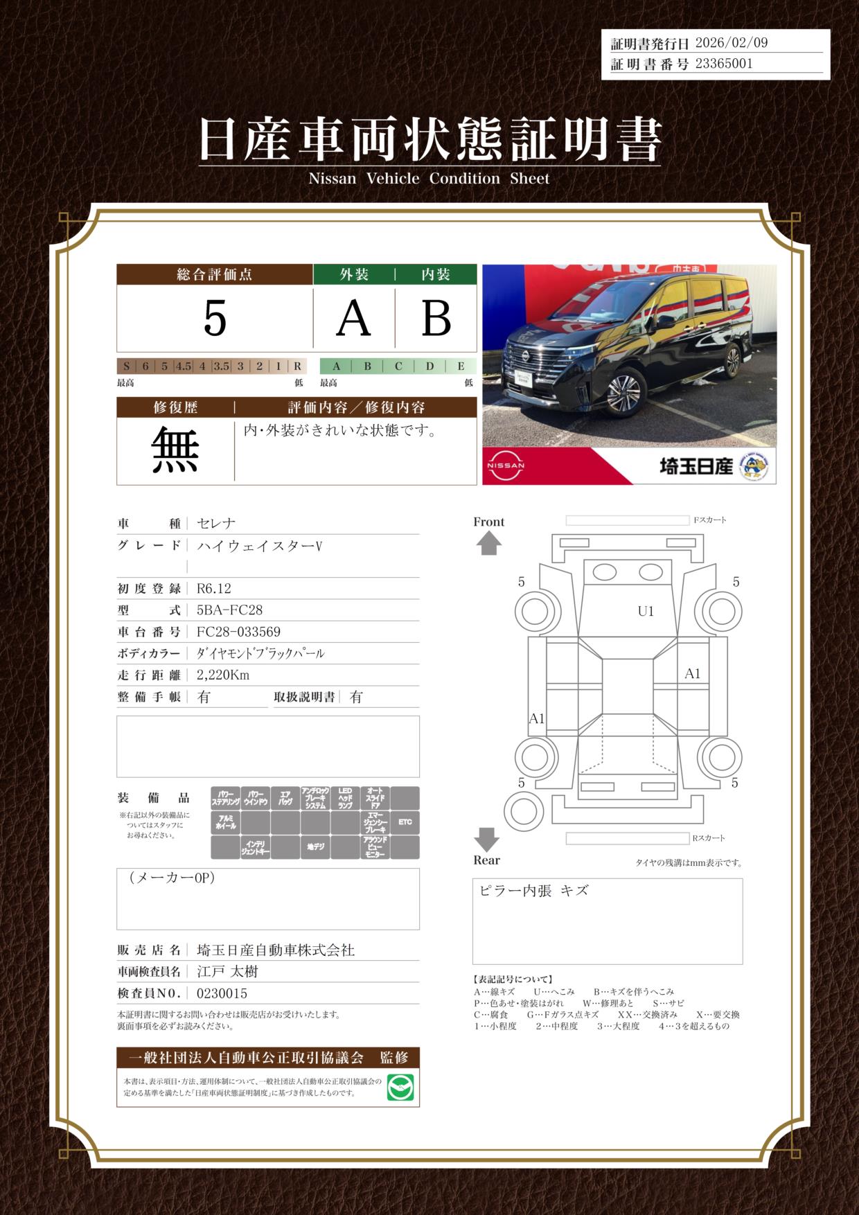 現状括弧書き内の年月まで車検有効期限が残っていますが、ご成約時に新しく車検を取り直します。なお取り直しの費用は車両価格に含まれています。