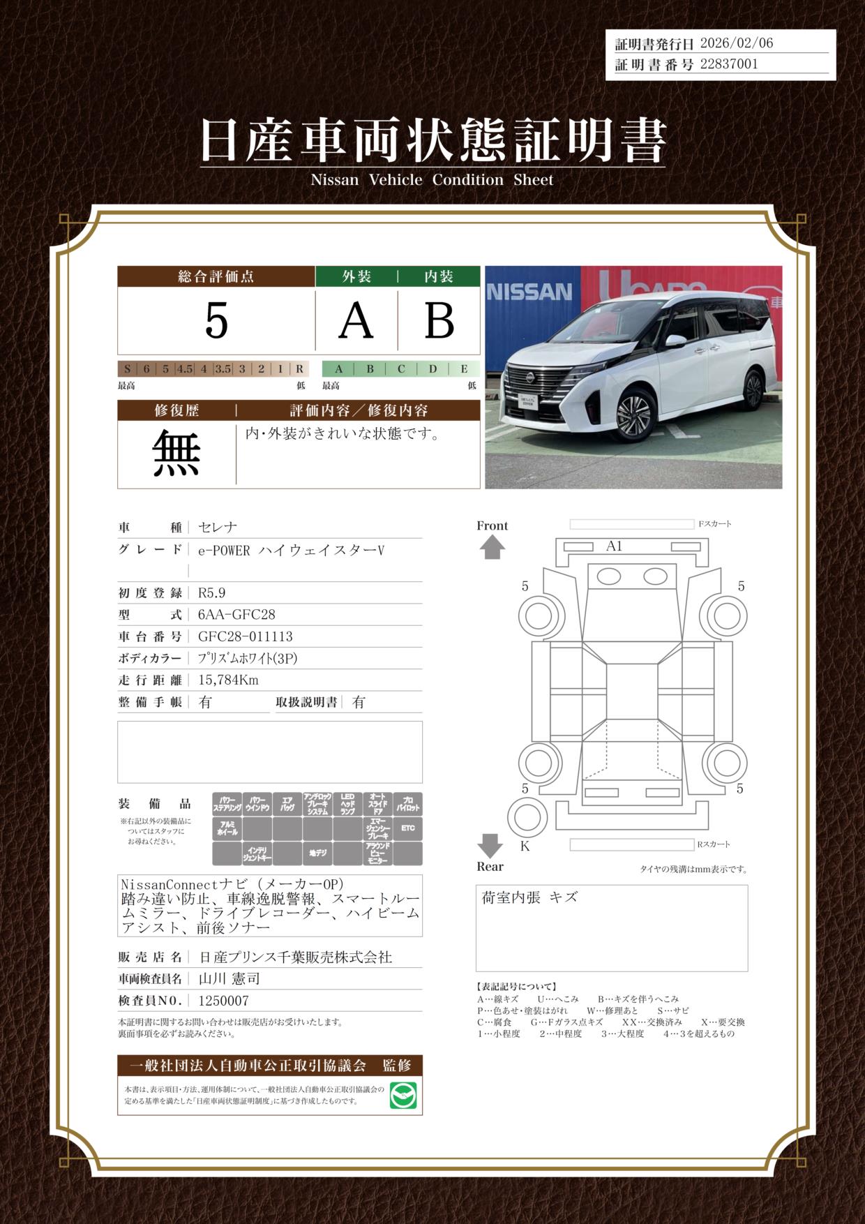 「車両状態証明書」は、査定協会監修のプロの検査員が公正かつ確かな基準で検査した”安心の証”です。