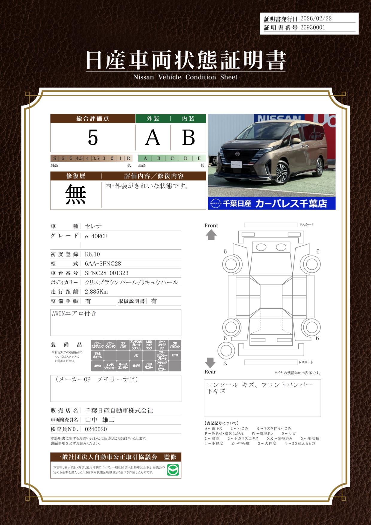 「車両状態証明書」は、査定協会監修のプロの検査員が公正かつ確かな基準で検査した”安心の証”です。