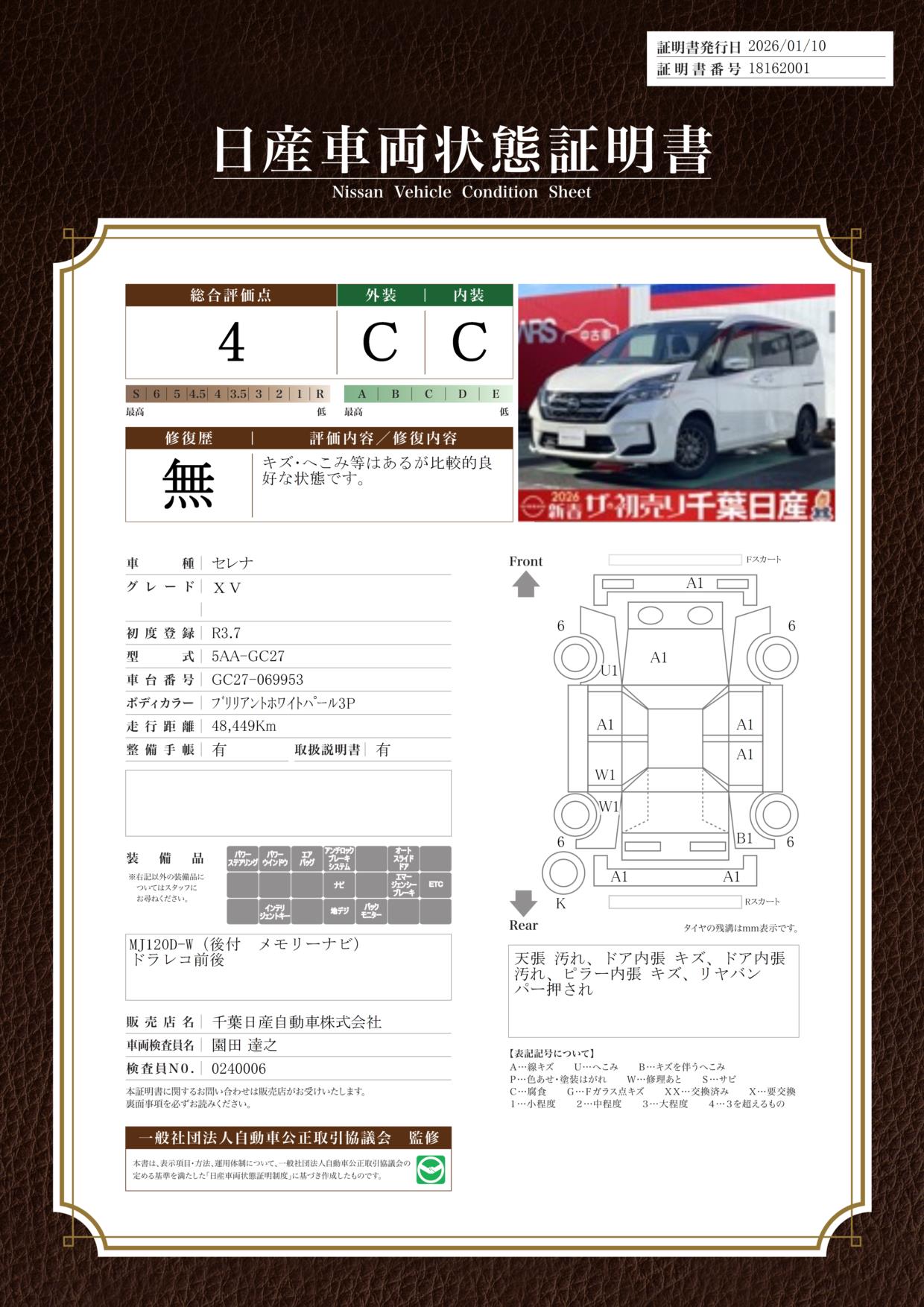 ●日産認定のクオリティショップです。日産プレミアム認定中古車、日産認定中古車、日産電動車を中心とした高品質な中古車を展示しております。 ●日産の中古車無料保証「ワイド保証」つきで安心です。他社の保証内容とぜひ見比べてください。 ●国道126号線沿いでアクセス抜群です。 ●キッズスペースもございますのでお子様連れでも安心です。 ●最寄り駅: JR千葉駅 ※公共交通機関でご来場のお客様はお声がけください。お迎えにあがります。 ●リモート商談も可能です。
