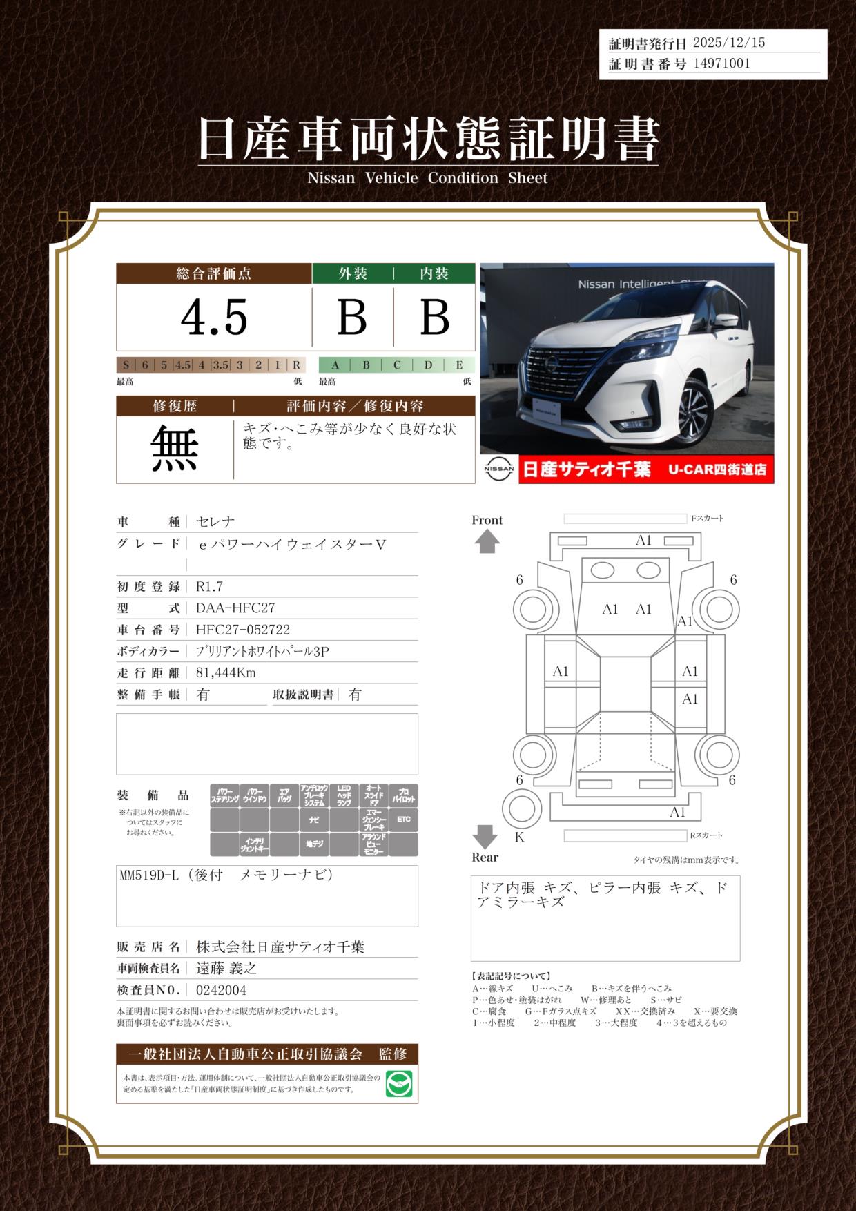 ★日産自動車認定のクオリティショップです。当社で使用していた社用車及び下取車によるラインナップとなります ★県内19店舗のサービス工場ネットワークでご購入後もご安心いただけます。 ★お問い合わせの際は「日産公式中古車検索サイトを見た」とお伝え下さい。 ★限られたスタッフで営業しておりますので、ご来店の際は事前のご予約をお願いいたします。 ☆☆U-CAR四街道店 スタッフ一同