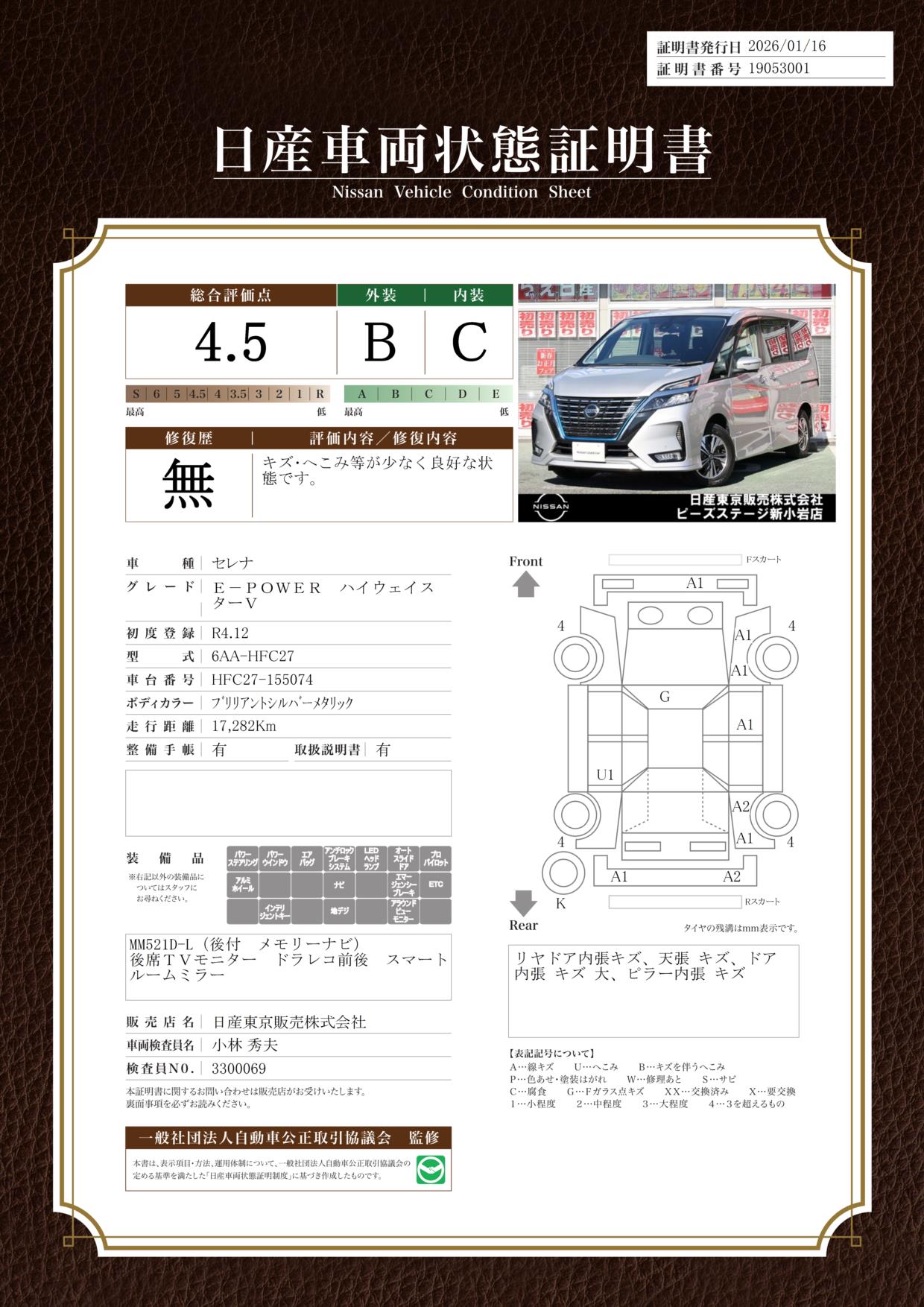現状括弧書き内の年月まで車検有効期限が残っていますが、ご成約時に新しく車検を取り直します。なお取り直しの費用は車両価格に含まれています。