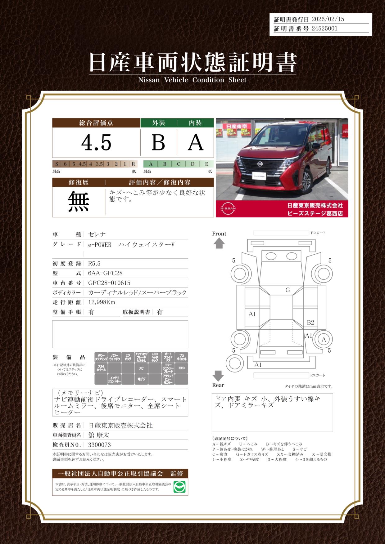 「車両状態証明書」は、査定協会監修のプロの検査員が公正かつ確かな基準で検査した”安心の証”です。