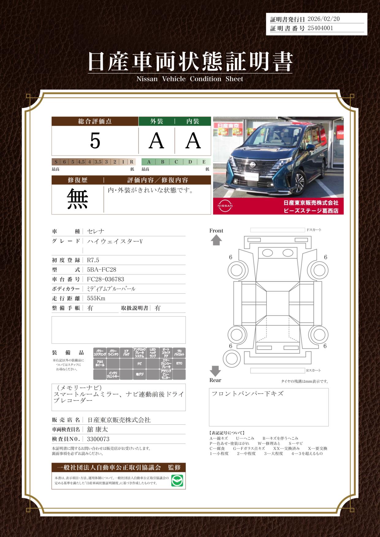 現状括弧書き内の年月まで車検有効期限が残っていますが、ご成約時に新しく車検を取り直します。なお取り直しの費用は車両価格に含まれています。