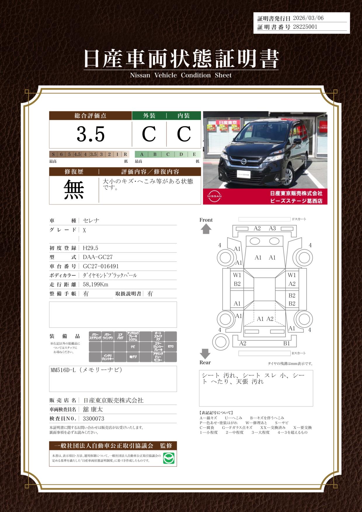 現状括弧書き内の年月まで車検有効期限が残っていますが、ご成約時に新しく車検を取り直します。なお取り直しの費用は車両価格に含まれています。