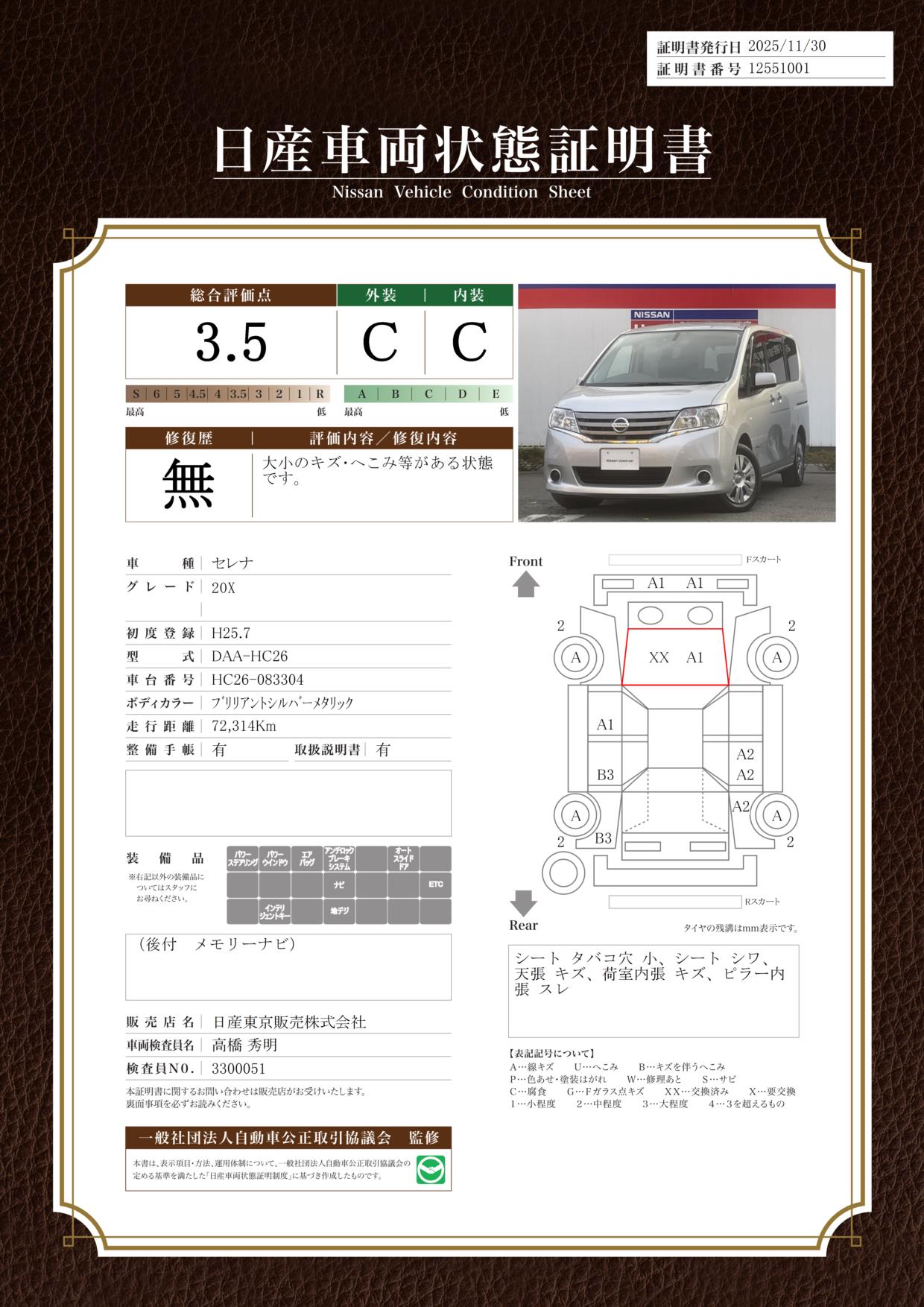 現状括弧書き内の年月まで車検有効期限が残っていますが、ご成約時に新しく車検を取り直します。なお取り直しの費用は車両価格に含まれています。