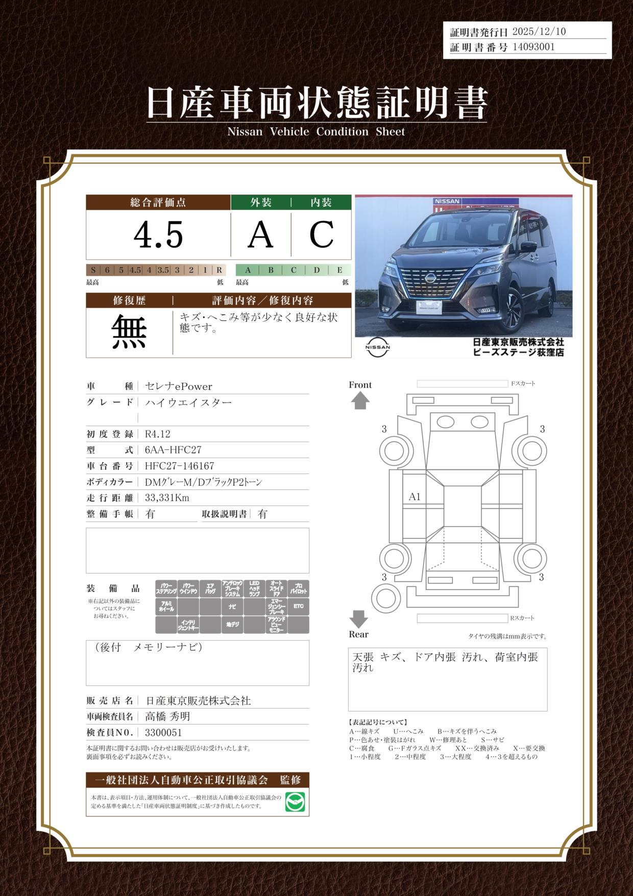 日産自動車認定の中古車販売店です。