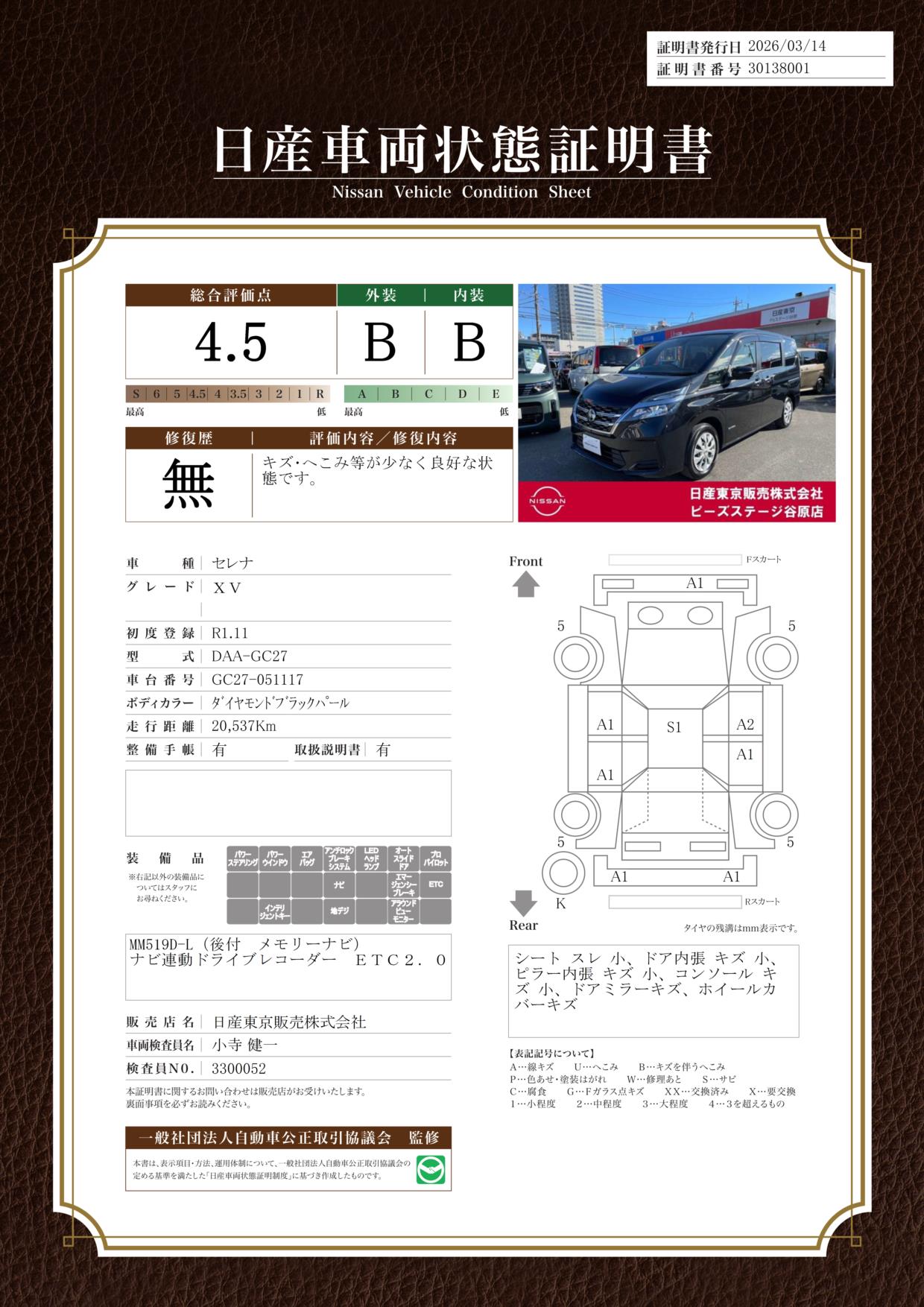 現状括弧書き内の年月まで車検有効期限が残っていますが、ご成約時に新しく車検を取り直します。なお取り直しの費用は車両価格に含まれています。