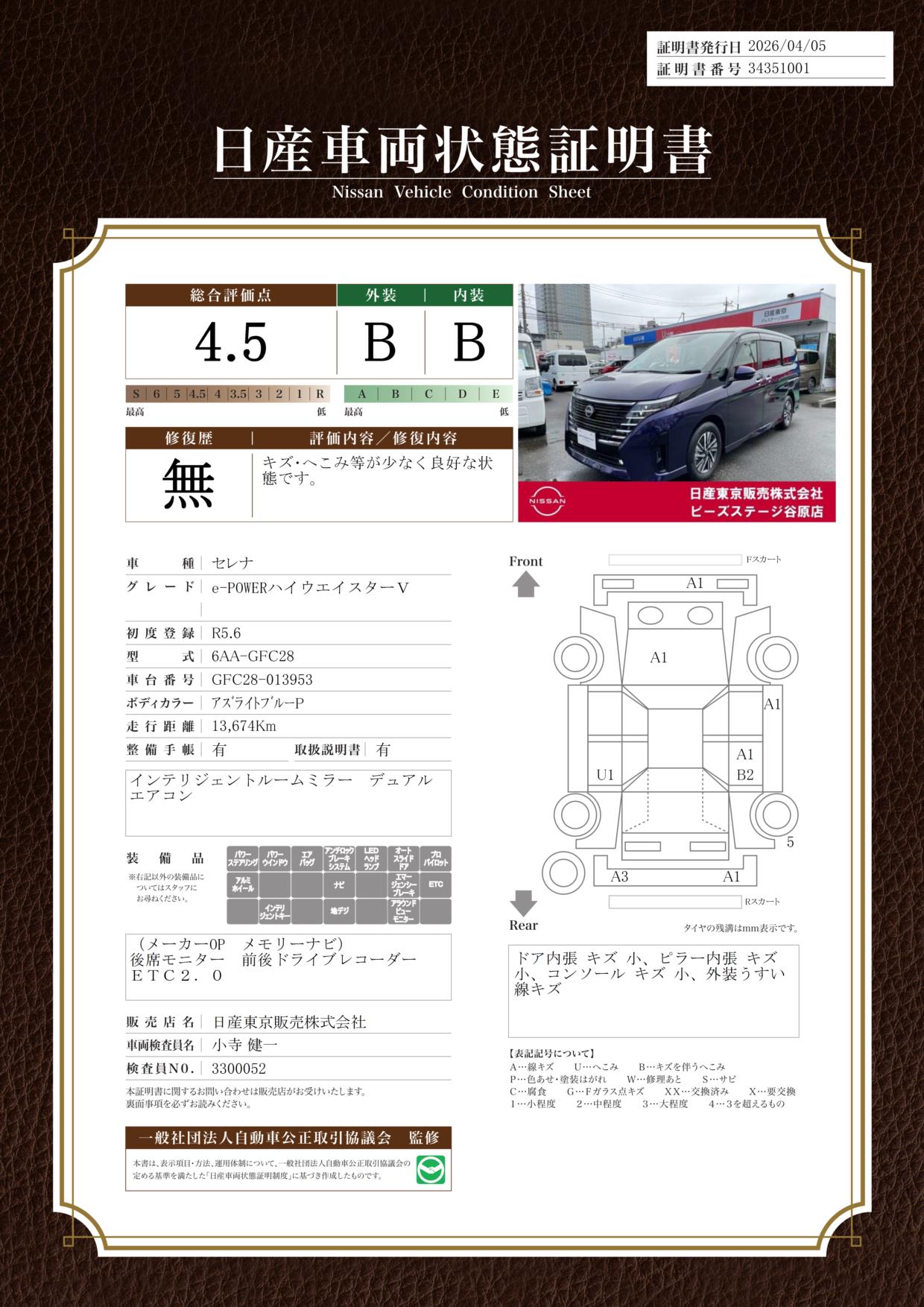 「車両状態証明書」は、査定協会監修のプロの検査員が公正かつ確かな基準で検査した”安心の証”です。
