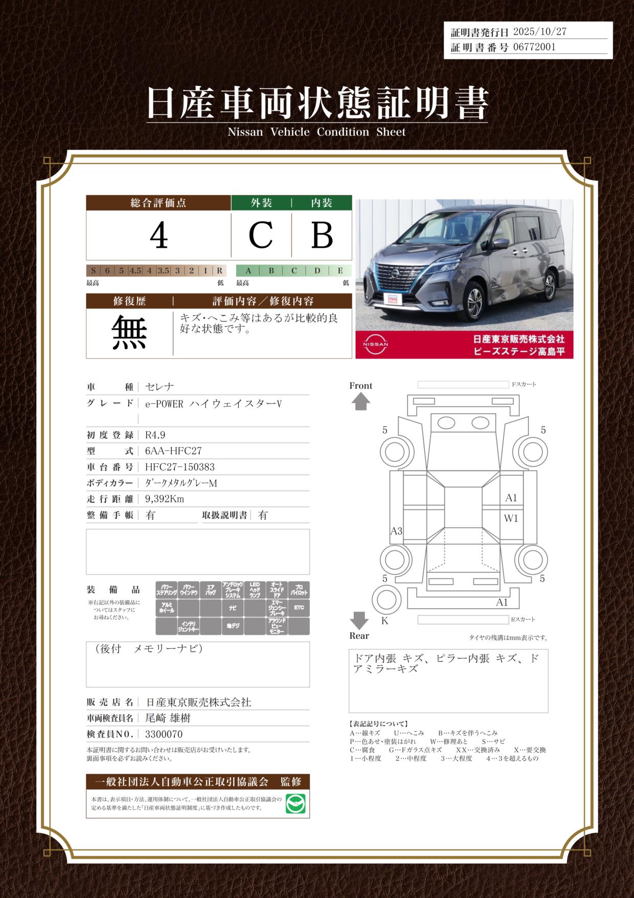 セレナ 1400cc 1.4 e-POWER ハイウェイスターV ワンオーナー 日産コネクトナビ
