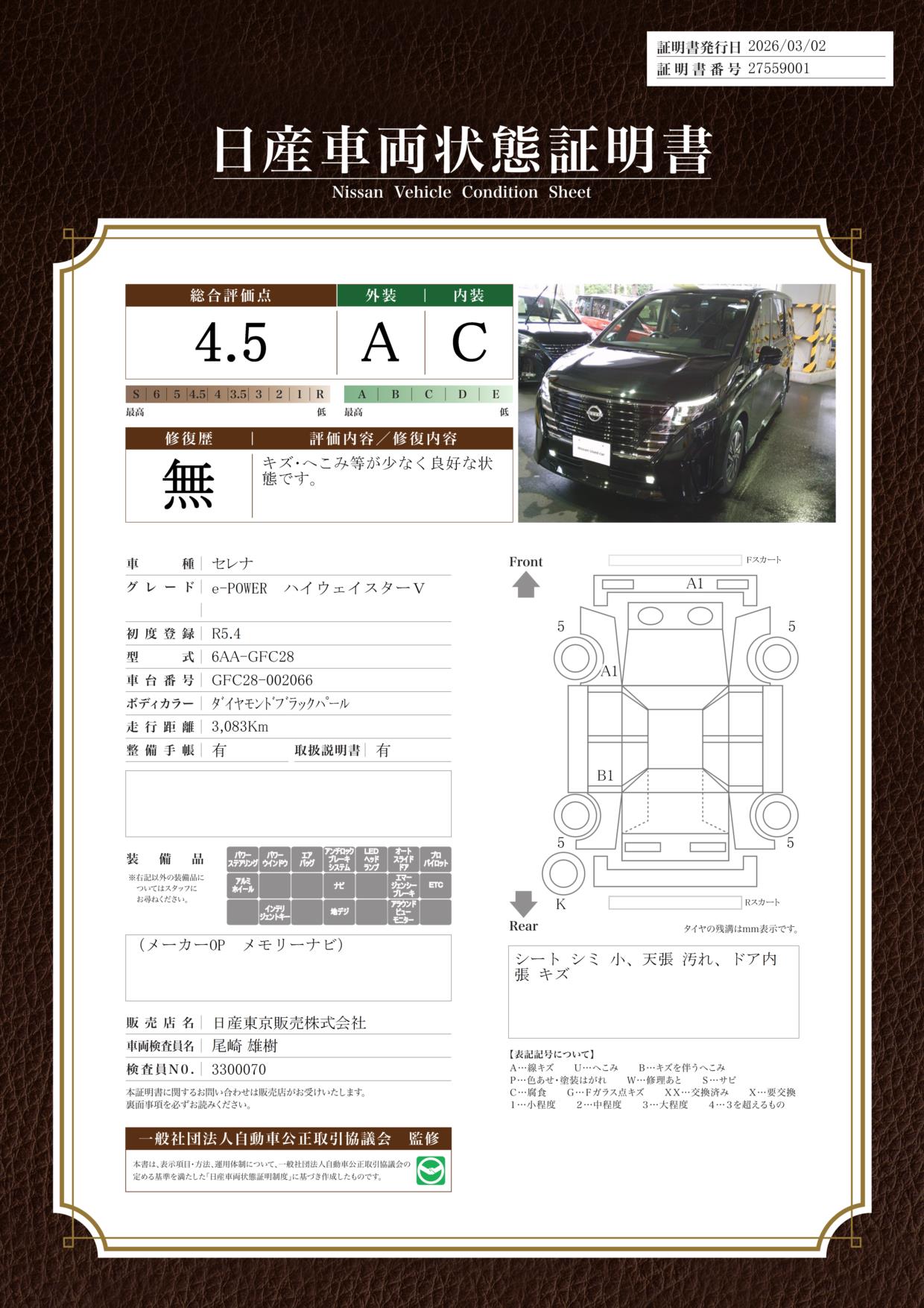 日産車両状態証明