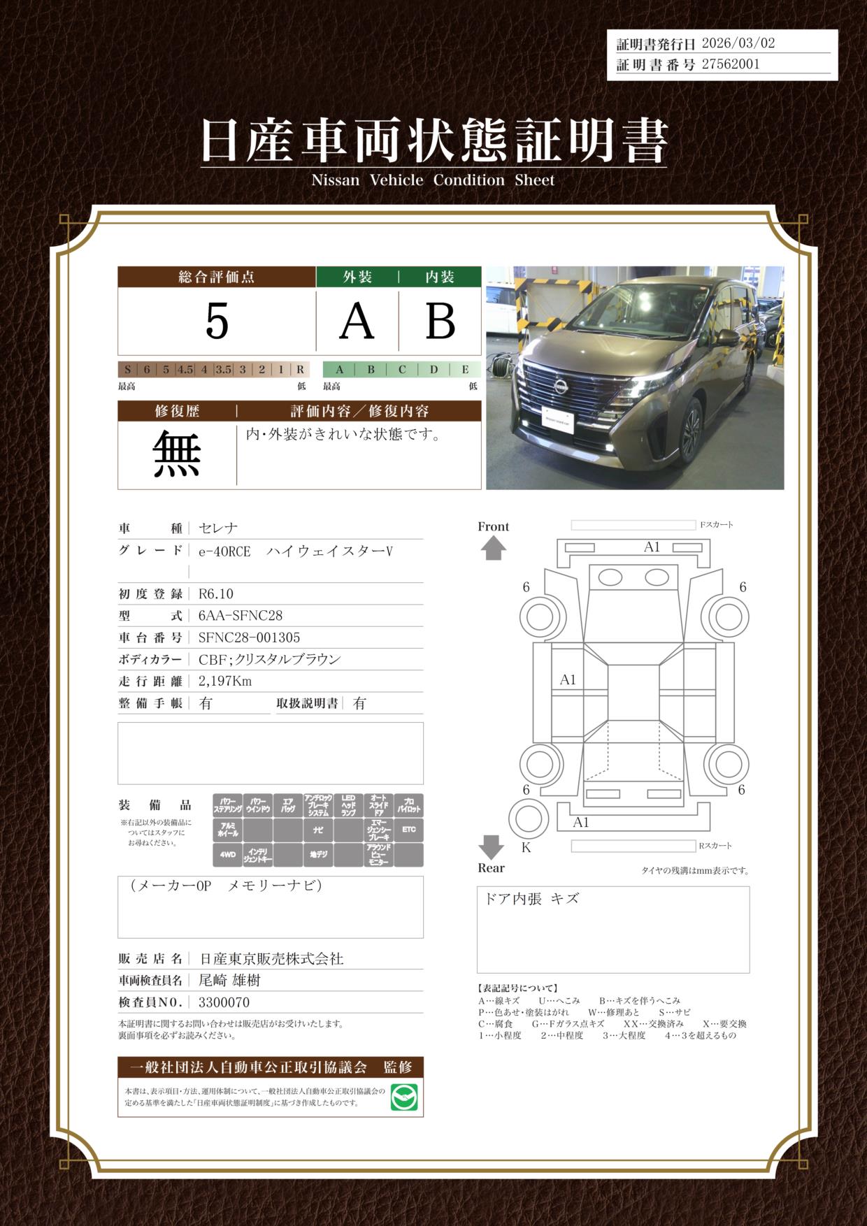 日産車両状態証明