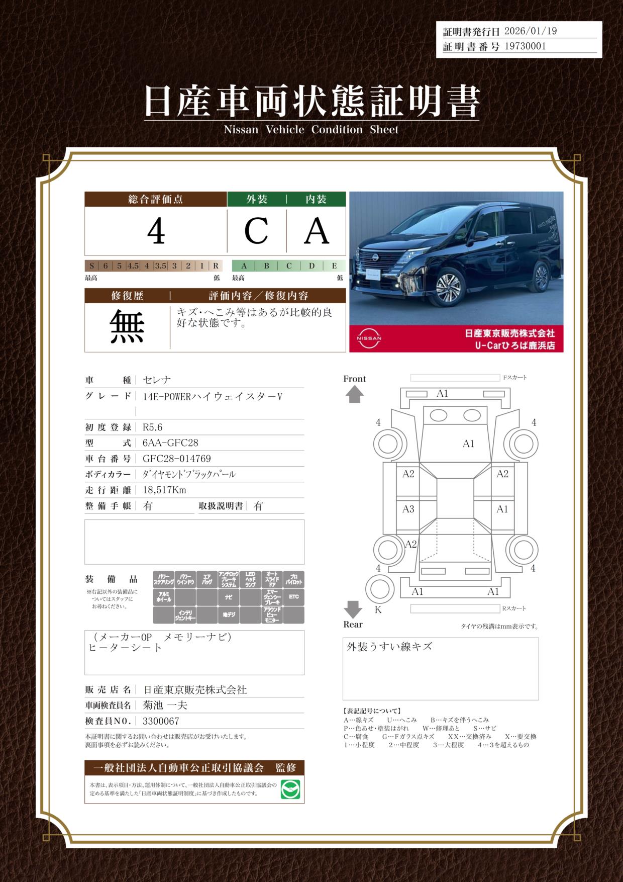 現状括弧書き内の年月まで車検有効期限が残っていますが、ご成約時に新しく車検を取り直します。なお取り直しの費用は車両価格に含まれています。