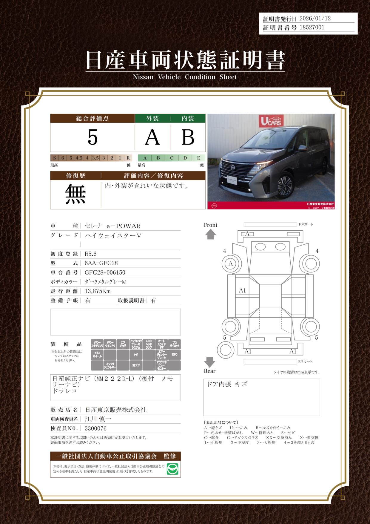 現状括弧書き内の年月まで車検有効期限が残っていますが、ご成約時に新しく車検を取り直します。なお取り直しの費用は車両価格に含まれています。
