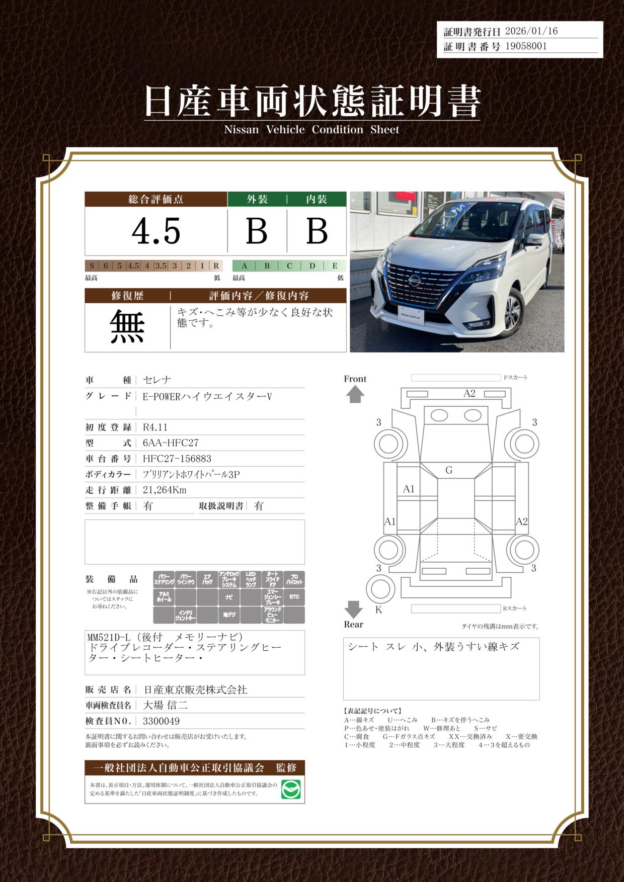 現状括弧書き内の年月まで車検有効期限が残っていますが、ご成約時に新しく車検を取り直します。なお取り直しの費用は車両価格に含まれています。