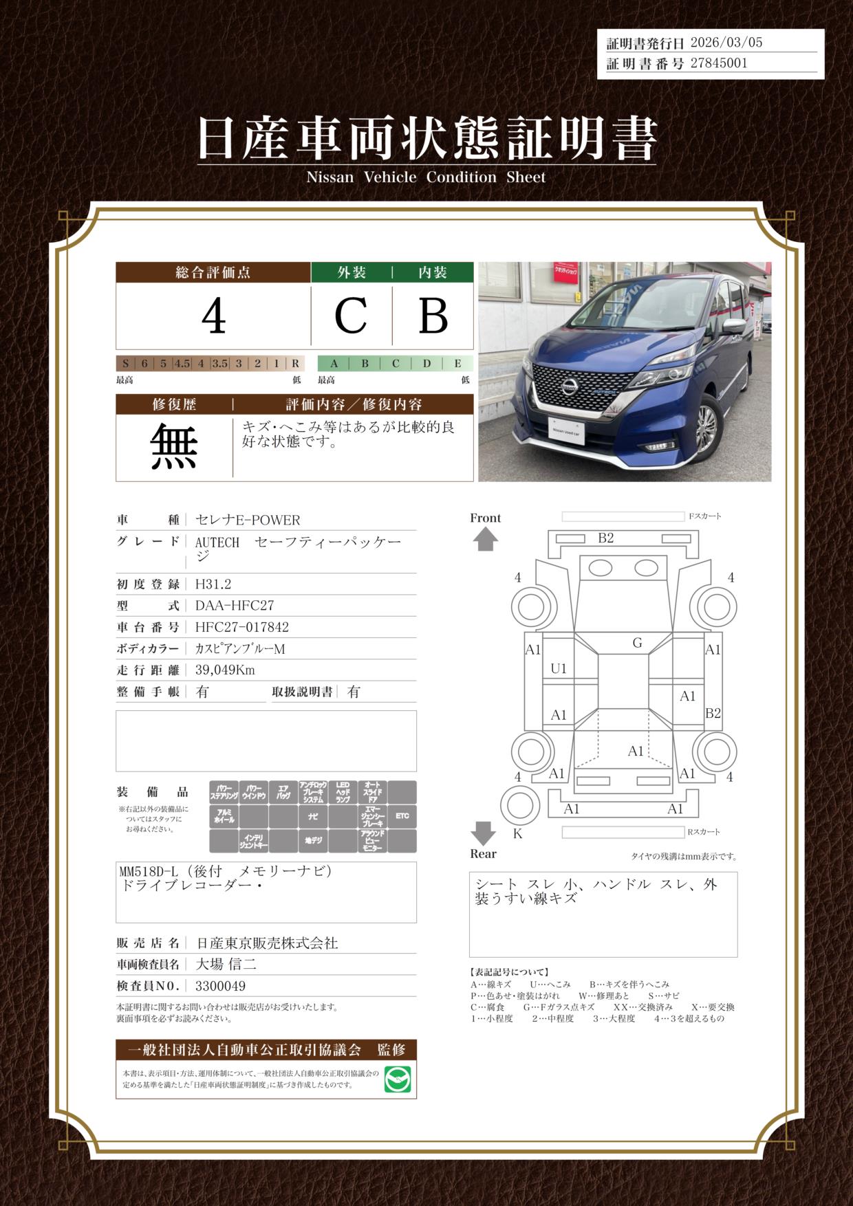 現状括弧書き内の年月まで車検有効期限が残っていますが、ご成約時に新しく車検を取り直します。なお取り直しの費用は車両価格に含まれています。