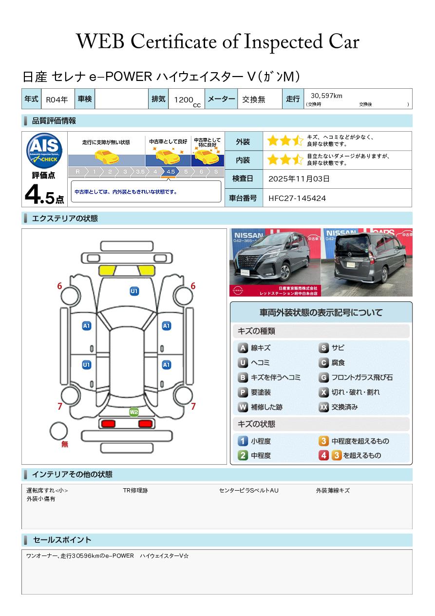 ワンオーナー、走行30596kmのe-POWER ハイウェイスターV☆プロパイロット、純正大画面メモリーナビ、ナビ連動前後ドラレコ、両側オートスライドドア、LEDライト☆