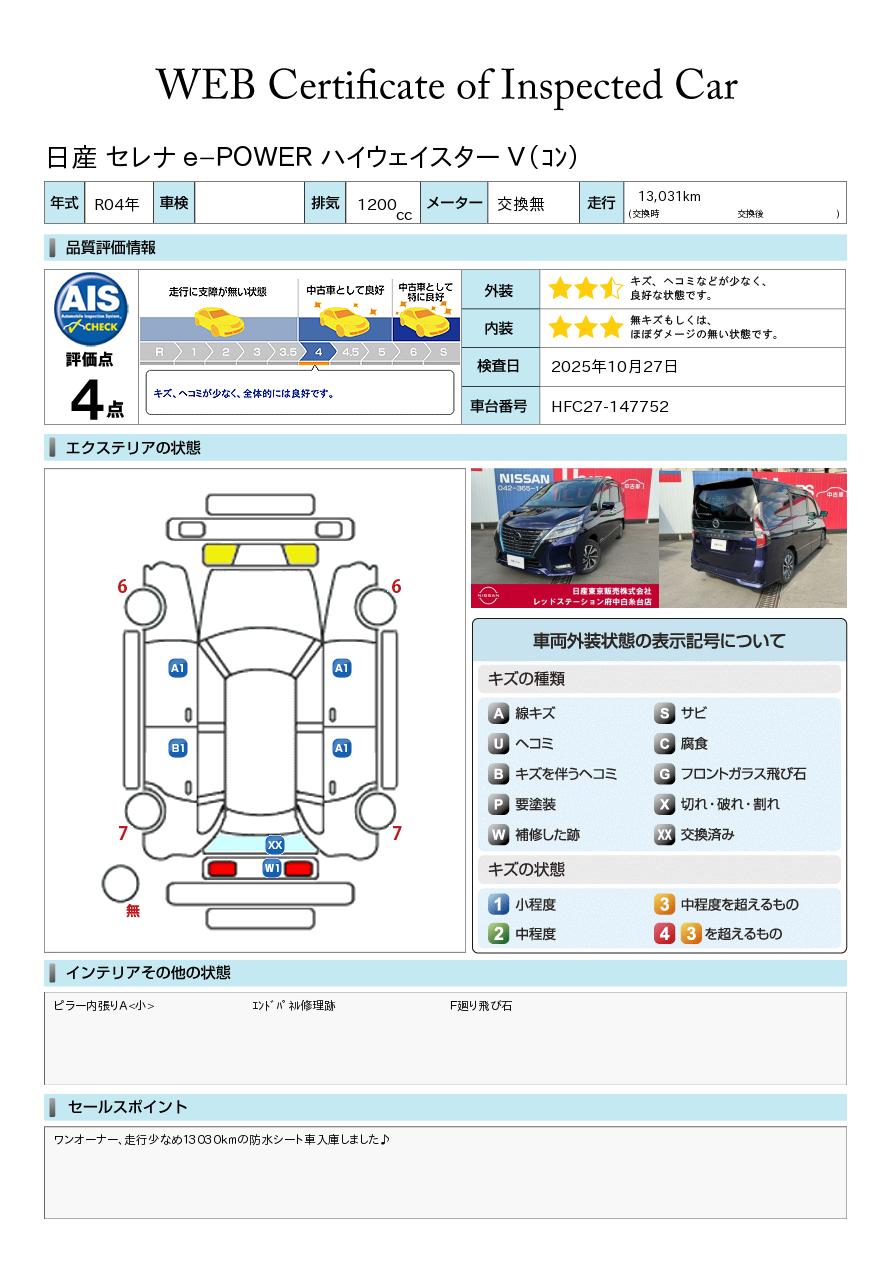 ワンオーナー、走行少なめ13030kmの防水シート車入庫しました♪プロパイロット、純正大画面メモリーナビ、ナビ連動ドラレコ&ETC2.0、後席モニター、LEDライト☆