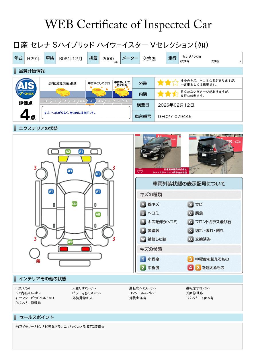 現状括弧書き内の年月まで車検有効期限が残っていますが、ご成約時に新しく車検を取り直します。なお取り直しの費用は車両価格に含まれています。