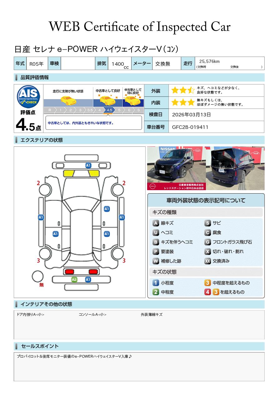 「車両状態証明書」は、査定協会監修のプロの検査員が公正かつ確かな基準で検査した”安心の証”です。
