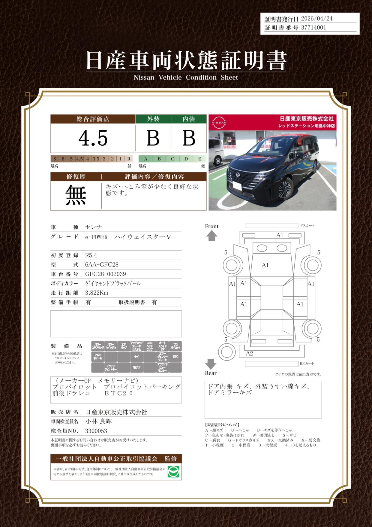 「車両状態証明書」は、査定協会監修のプロの検査員が公正かつ確かな基準で検査した”安心の証”です。
