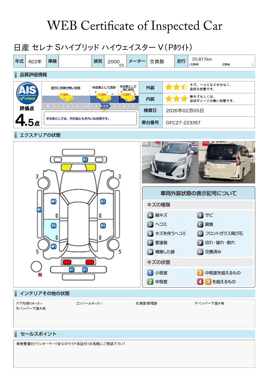 現状括弧書き内の年月まで車検有効期限が残っていますが、ご成約時に新しく車検を取り直します。なお取り直しの費用は車両価格に含まれています。