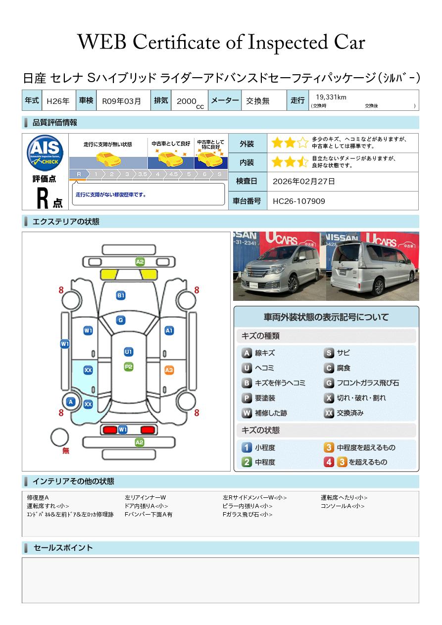 セレナ2.0 ライダー S-HYBRID アドバンストセーフティ パッケージ