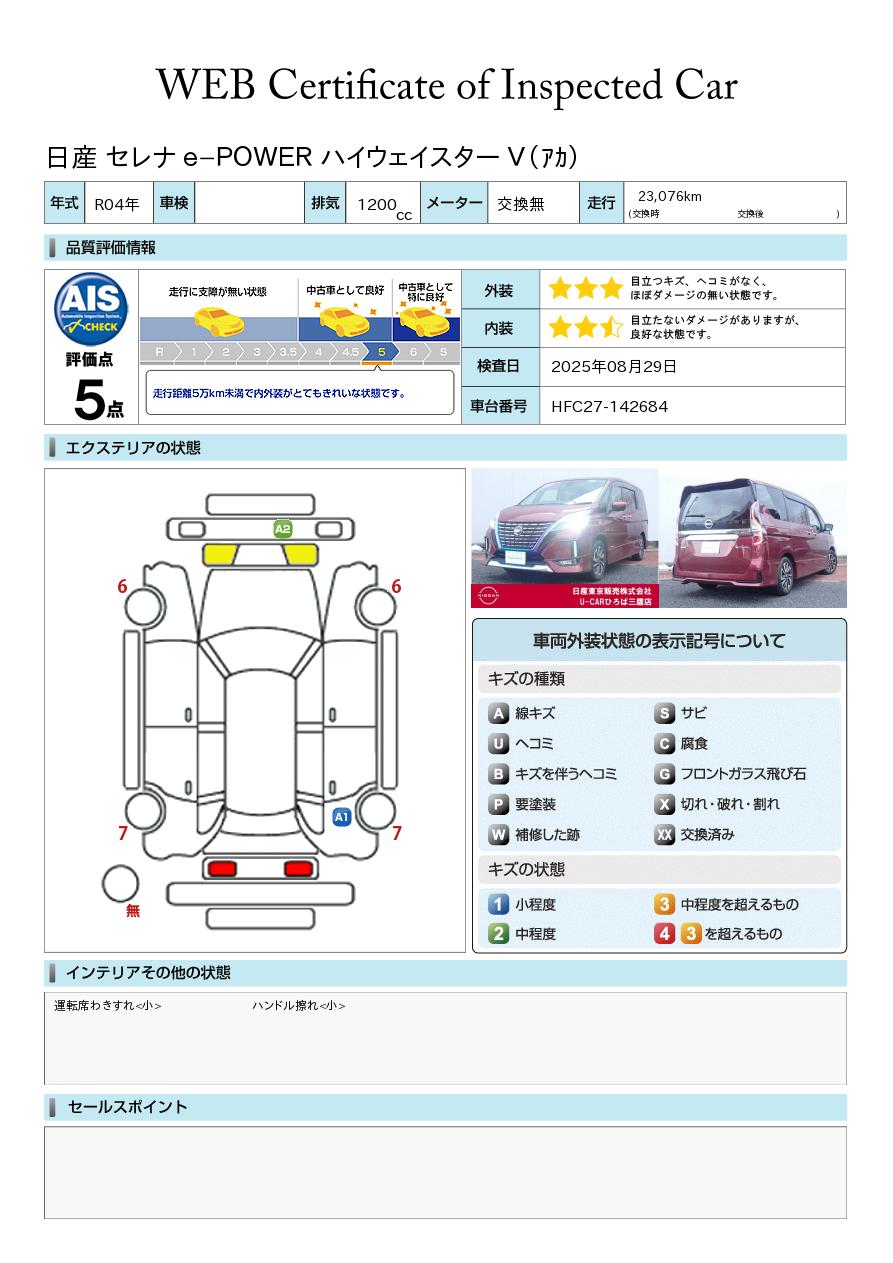 日産プレミアム認定中古車 e-POWER プロパイロット