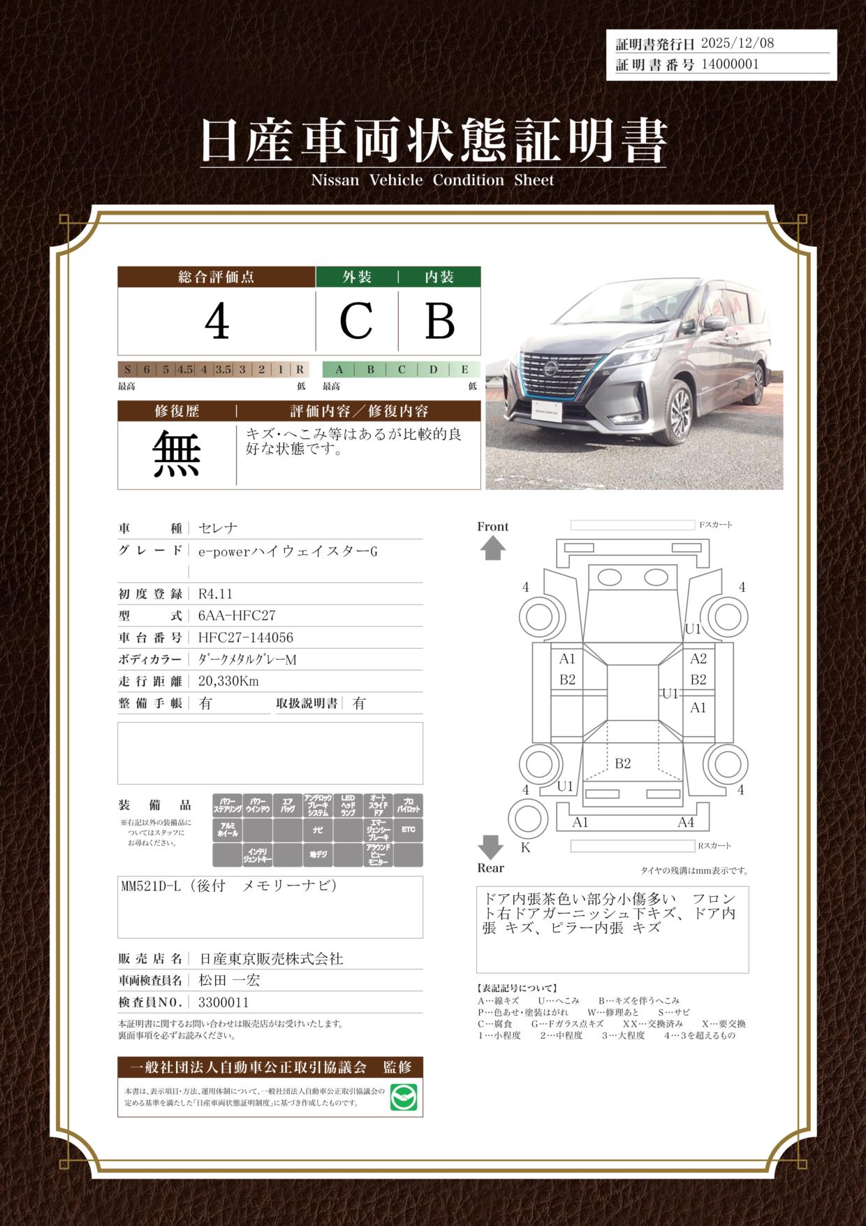 日産自動車認定の中古車販売店です。