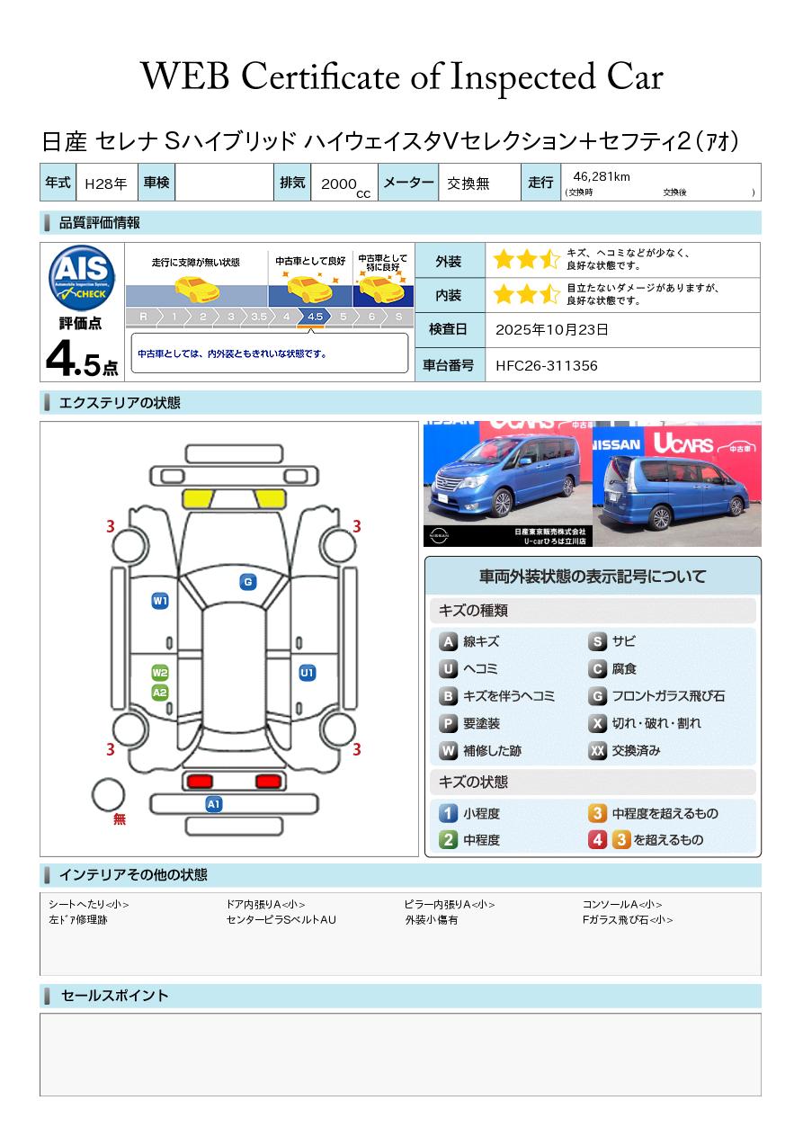 セレナ 2000cc 2.0 ハイウェイスター Vセレクション+SafetyII S-HYBRID