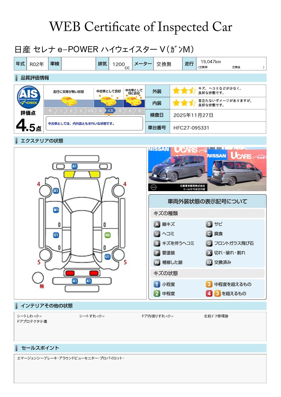 セレナ 1400cc 1.4 e-POWER ハイウェイスターV 寒冷地仕様ホットプラスパッケージ・後席フ