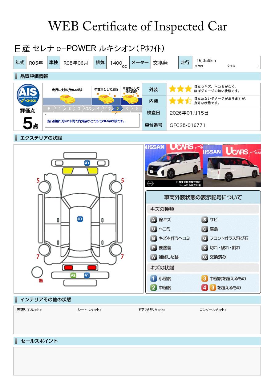 セレナ 1400cc 1.4 e-POWER ルキシオン 当社試乗展示車 ライン装着コネクトナビ