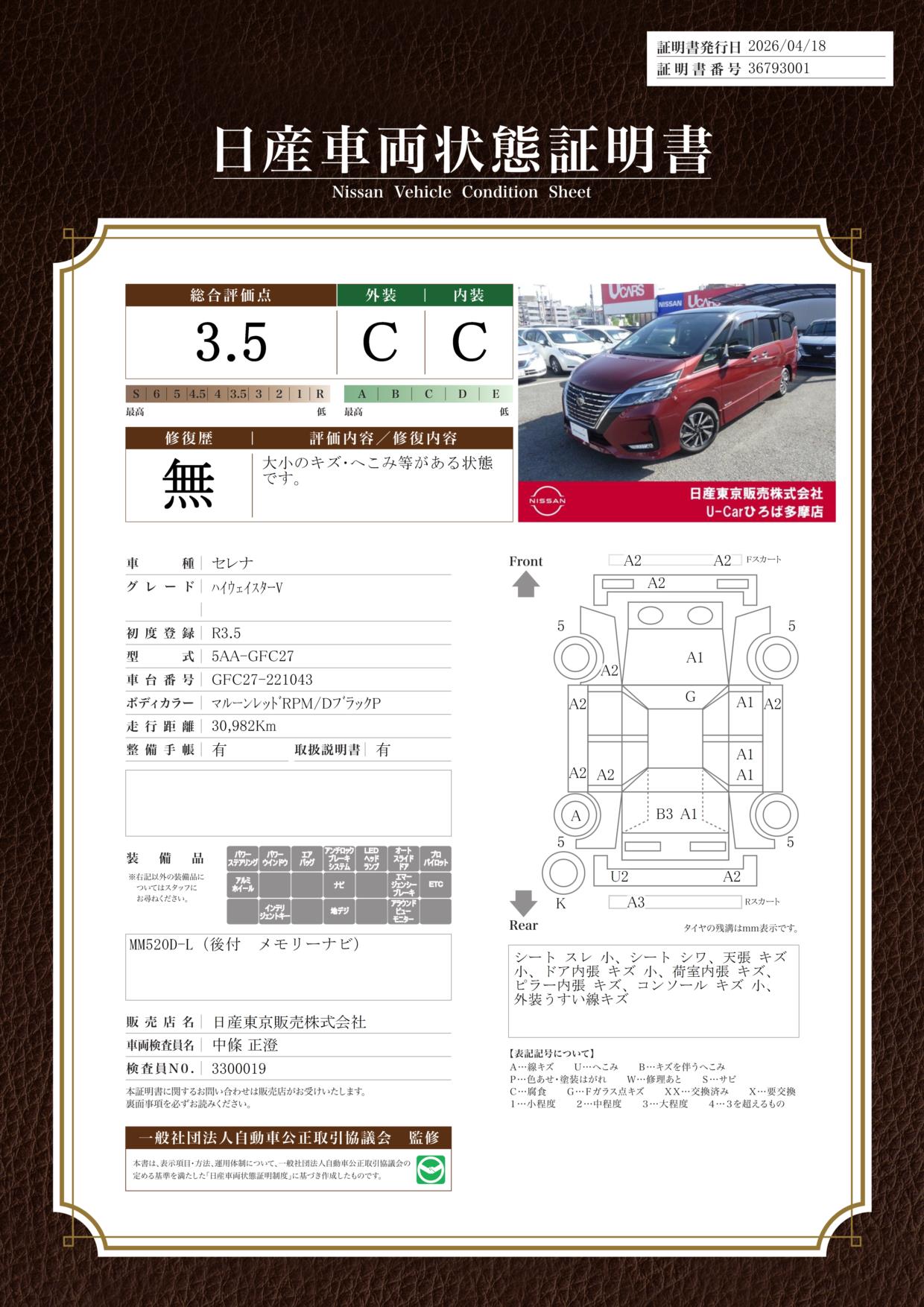 現状括弧書き内の年月まで車検有効期限が残っていますが、ご成約時に新しく車検を取り直します。なお取り直しの費用は車両価格に含まれています。