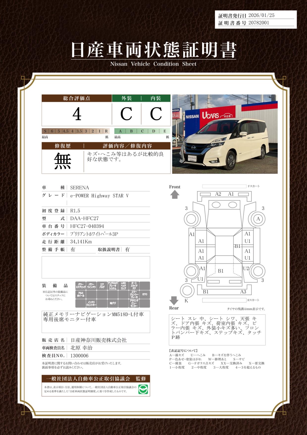 セレナ 1400cc 1.4 e-POWER ルキシオン 元弊社社有車UP ルキシオン 入 荷 !