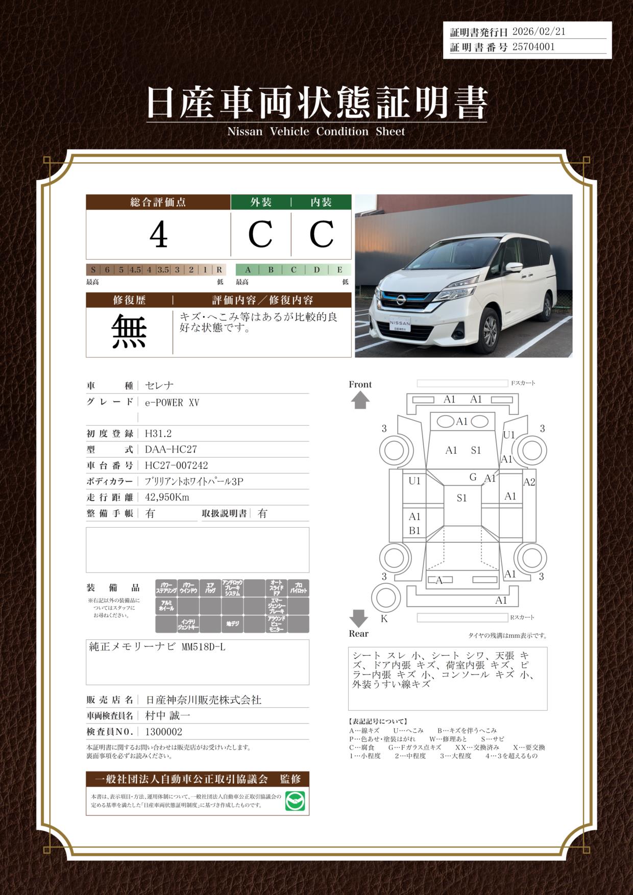 【ワンオーナー車】 内外装・お見積り等気になる点、何でもお聞きください。ご納車前に整備をします☆これにより保証が付きます→全国の日産のお店で使える保証です☆