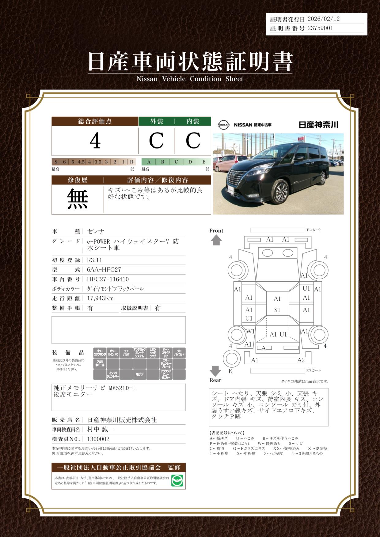 現状括弧書き内の年月まで車検有効期限が残っていますが、ご成約時に新しく車検を取り直します。なお取り直しの費用は車両価格に含まれています。