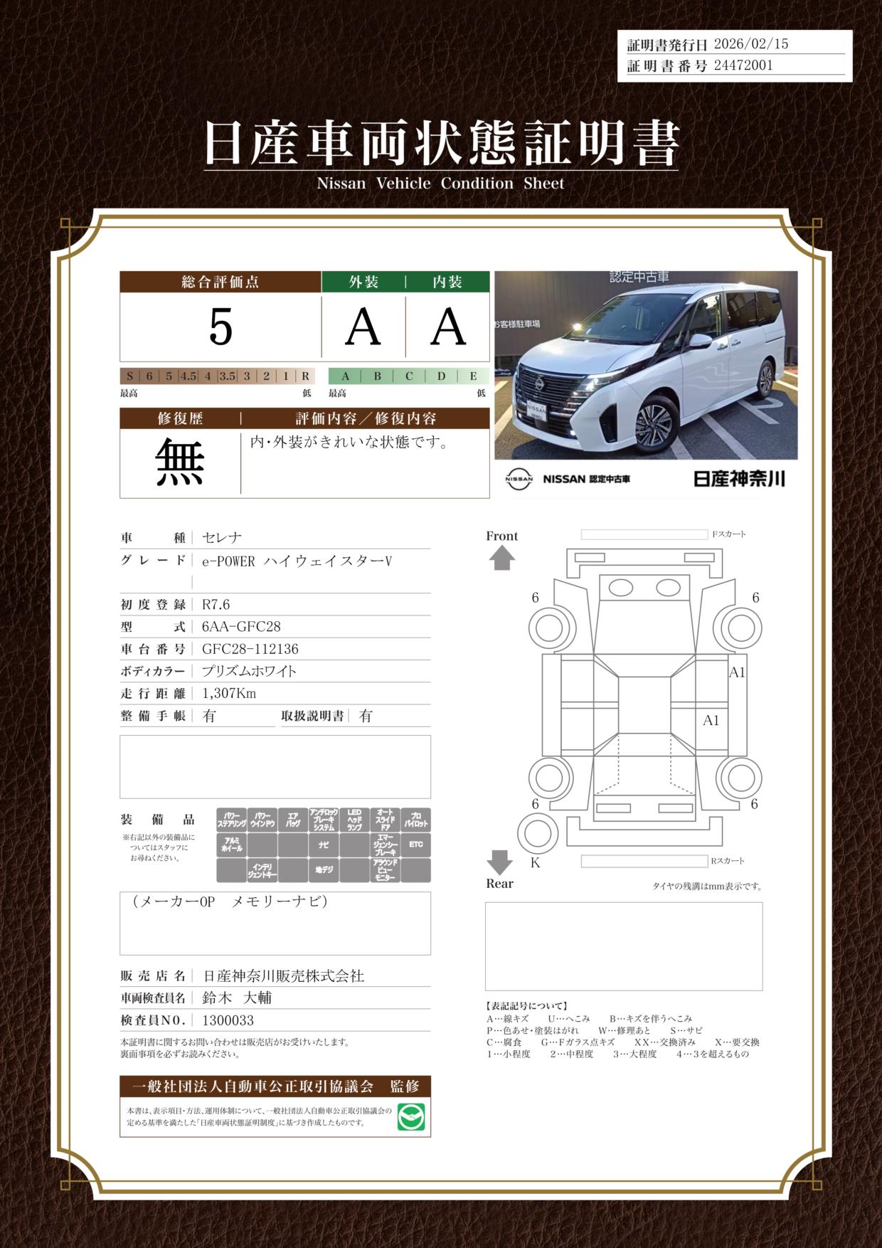 【禁煙車として使用 日産神奈川元展示試乗車】日本全国登録ご納車承ります。メーカー特別保証(初度登録から5年/10万キロ)継承。全国の日産サービス工場でメンテナンス可能です。