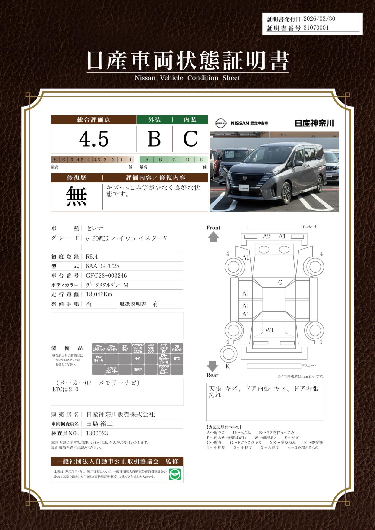 日産車両状態証明
