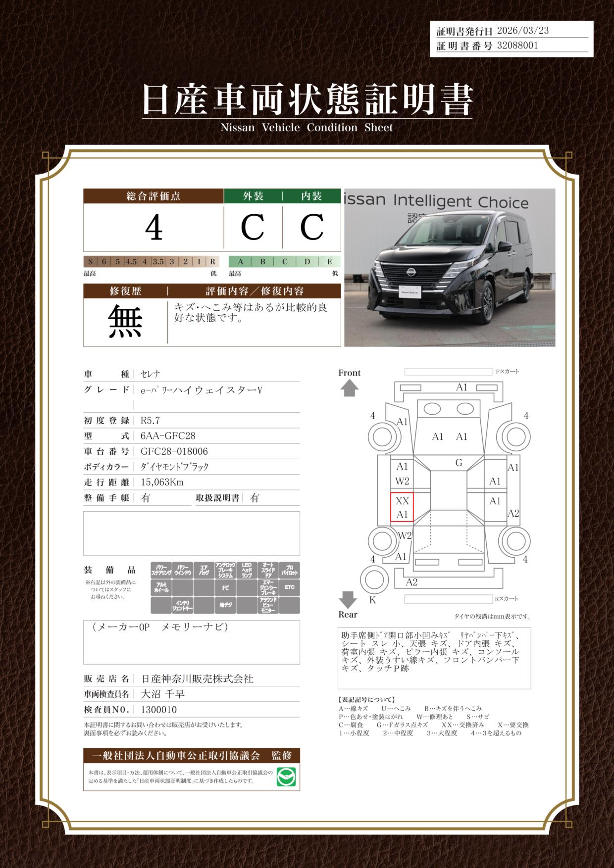現状括弧書き内の年月まで車検有効期限が残っていますが、ご成約時に新しく車検を取り直します。なお取り直しの費用は車両価格に含まれています。