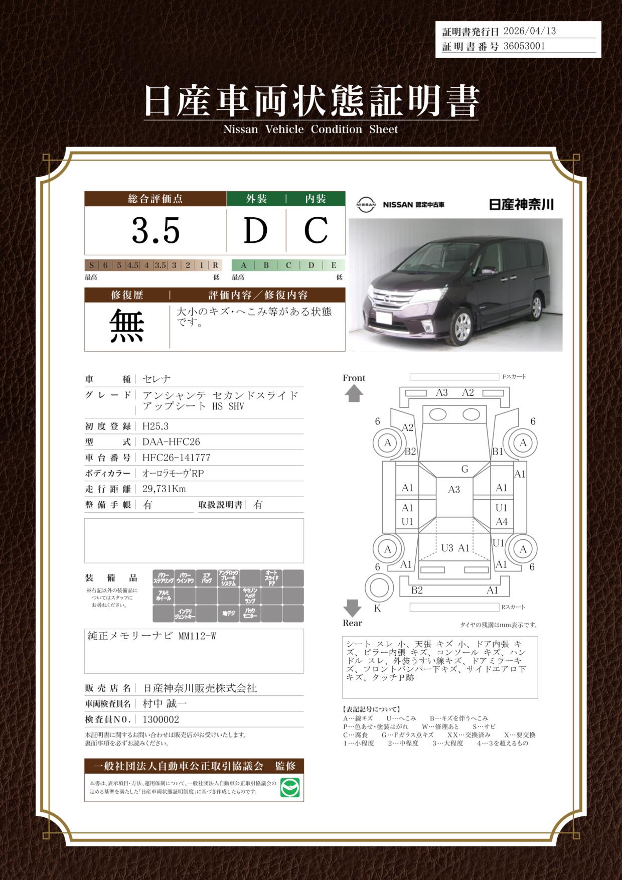 こちらのクルマは 「日産認定中古車」。 だから、4つの安心をお約束。