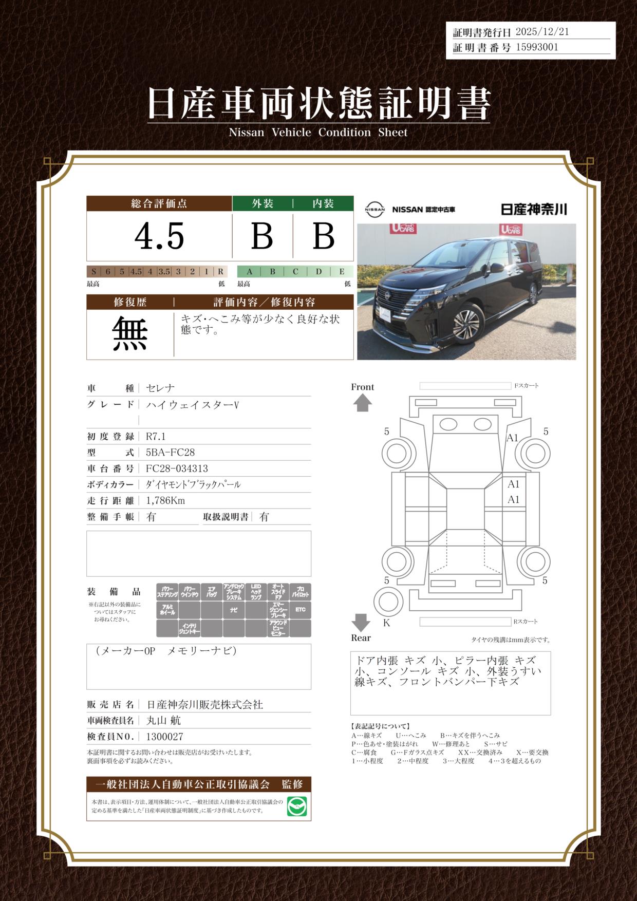 現状括弧書き内の年月まで車検有効期限が残っていますが、ご成約時に新しく車検を取り直します。なお取り直しの費用は車両価格に含まれています。